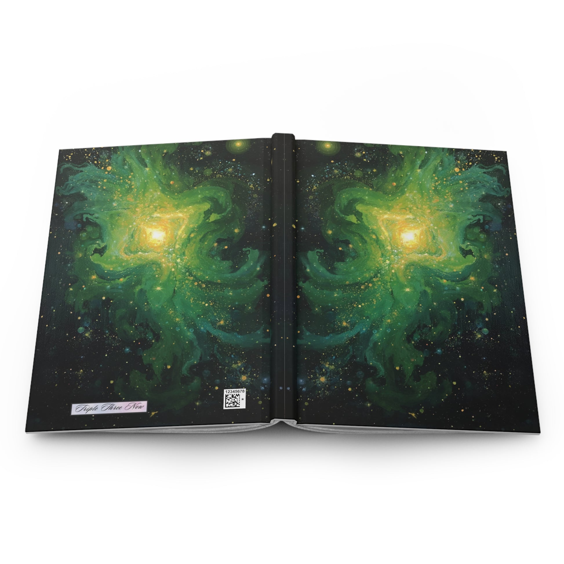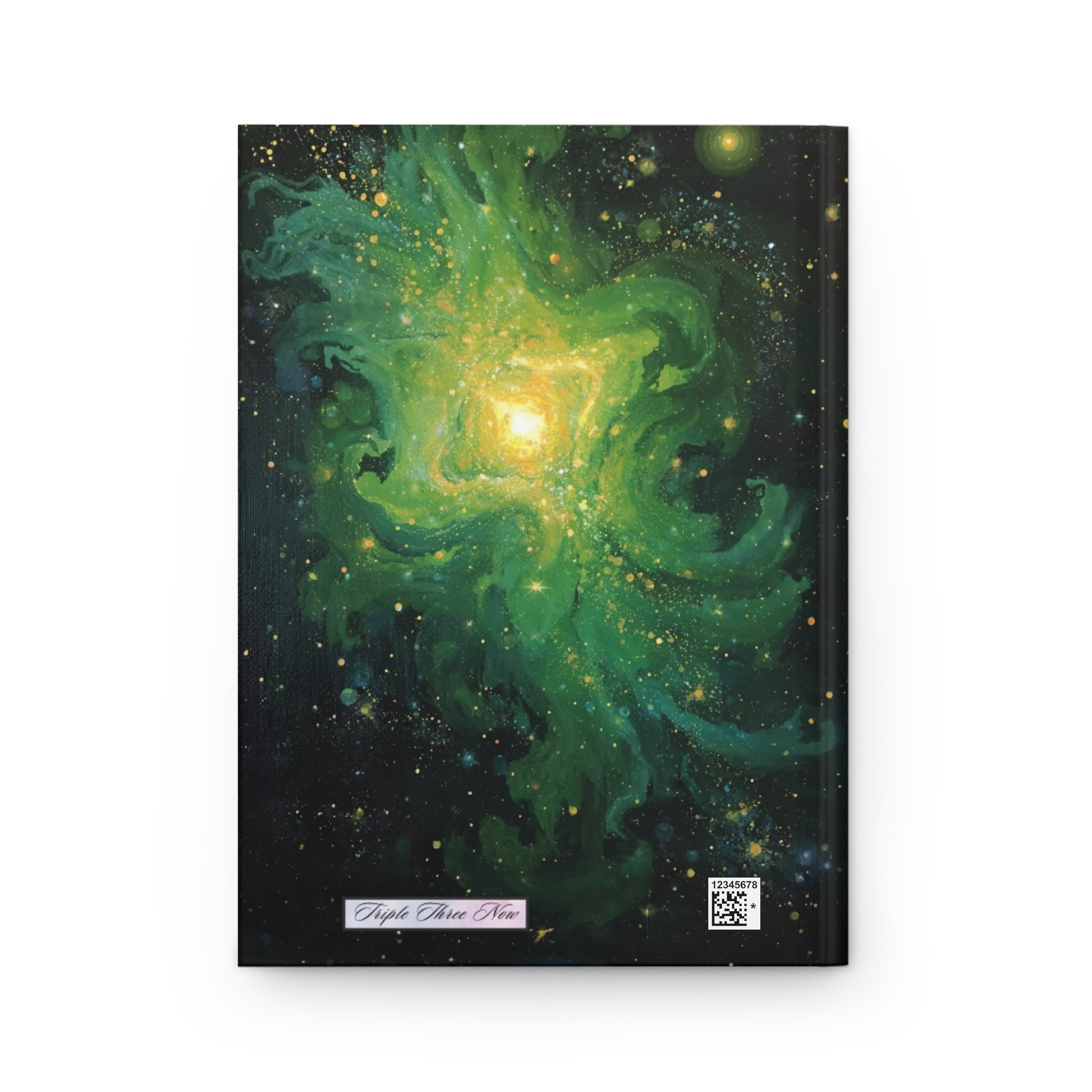 A hardcover journal wrapped in a deep green cosmic swirl that feels like holding a small galaxy in your hands. The matte laminated cover softens the bright, vivid colors while giving the book a durable, tactile finish that invites touch. Inside, 150 lined pages sit on a sewn casewrap binding that lets the book open flat and flex with every entry. Perforated sheets make it simple to detach notes or sketches without damaging the spine. The full wraparound print keeps the nebula flowing from front to back, so every angle reveals a new tendril of color and starlight. This journal belongs on a nightstand during reflective evenings, tucked into a backpack for field sketches, or brought to a quiet café for uninterrupted writing sessions—an inspiring companion for anyone who likes to record thoughts, plans, or observations with a bit of wonder.