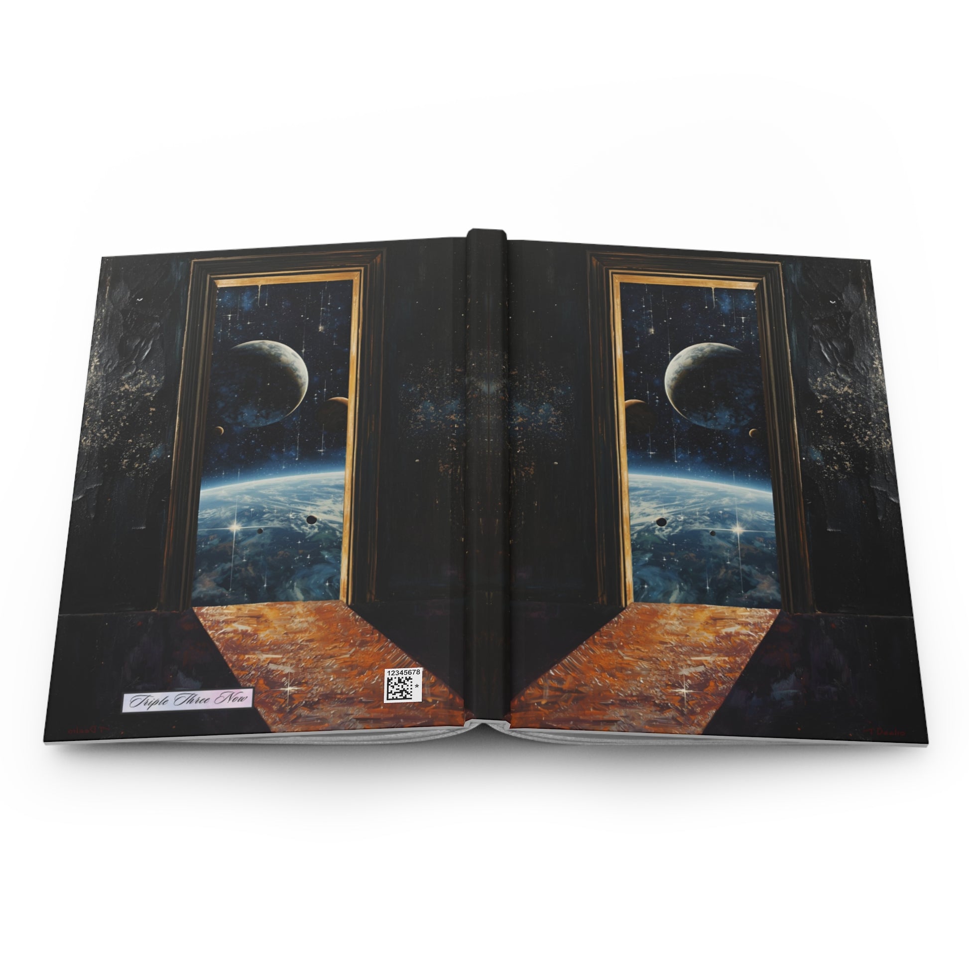 Step through a doorway into a quiet, star-lit cosmos. This hardcover journal brings a painterly, otherworldly scene to your desk — a framed portal opening onto planets and the curve of a distant world. The matte laminated cover gives the image depth without glare, and the full wraparound print keeps the scene continuous across front, spine, and back. Inside, 150 lined pages with perforations and a flexible sewn spine make writing, sketching, and tearing out pages effortless. Keep it on your nightstand for late-night thoughts, carry it to a café to capture sudden ideas, or place it on your altar as a daily reminder that curiosity and wonder are always close at hand.